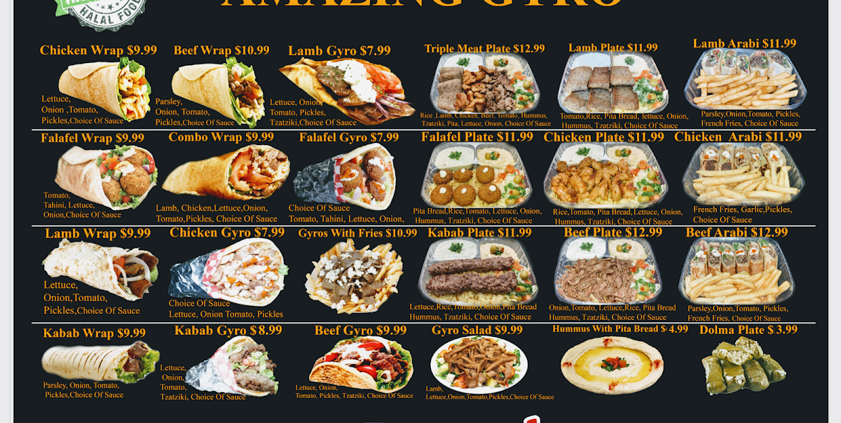 Located in Beaverton, Oregon, Amazing Gyro serves a vibrant array of Mediterranean flavors that truly live up to its name. The menu features a variety of options designed to tantalize any palate. Begin with the Hummus with Pita for a delightful starter at $11.00 or indulge in the hearty Falafel Gyro, bursting with flavors of lettuce, tomato, pickles, and a selection of signature sauces for just $16.00.